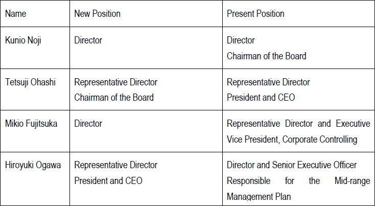 Kunio Noji and Mikio Fujitsuka will both retire from the position of Director and assume the position of Senior Adviser, upon closing of the annual shareholders’ meeting scheduled for mid June 2019.