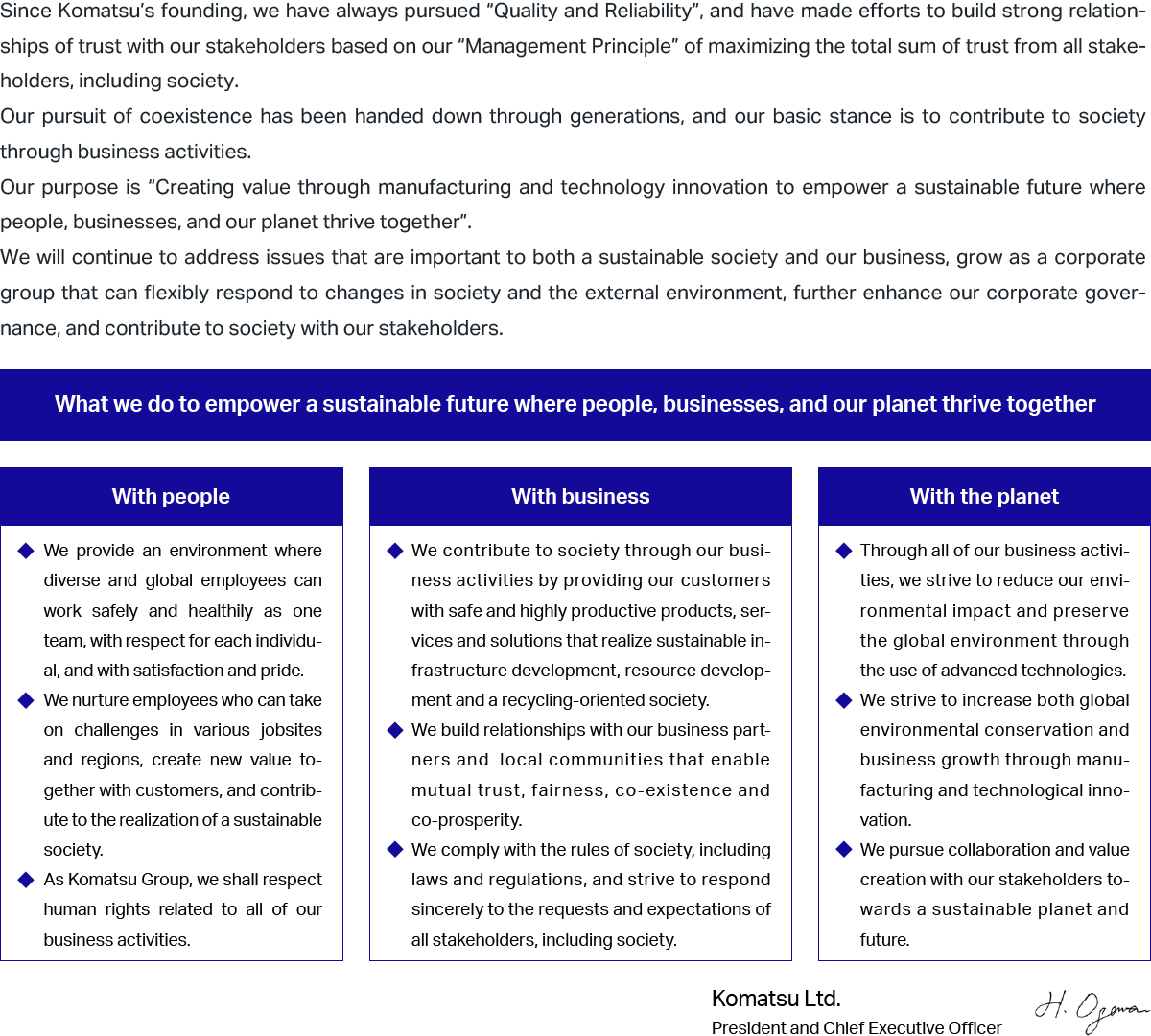 ・For the sustainability policy page: https://www.komatsu.jp/en/aboutus/csr/sustainability