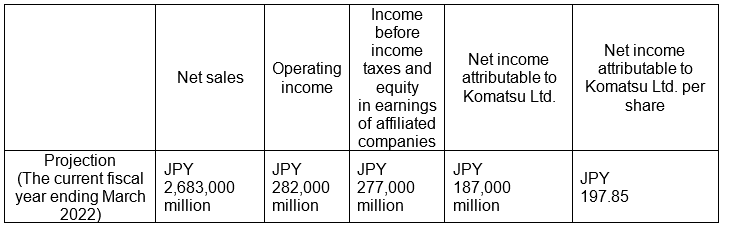 Reference: Projection of Komatsu’s consolidated business results for the current fiscal year (disclosed on October 28, 2021)