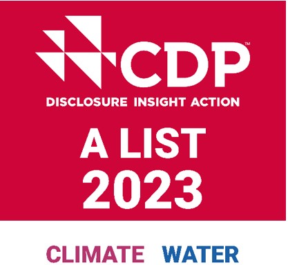 *CDP: CDP is a global non-profit that runs the world’s environmental disclosure system for companies, cities, states and regions. Founded in 2000 and working with more than 740 financial institutions with over $136 trillion in assets, CDP pioneered using capital markets and corporate procurement to motivate companies to disclose their environmental impacts, and to reduce greenhouse gas emissions, safeguard water resources and protect forests. Over 24,000 organizations around the world disclosed data through CDP in 2023, with more than 23,000 companies – including listed companies worth two thirds global market capitalization - and over 1,100 cities, states and regions. Fully TCFD aligned, CDP holds the largest environmental database in the world, and CDP scores are widely used to drive investment and procurement decisions towards a zero carbon, sustainable and resilient economy.