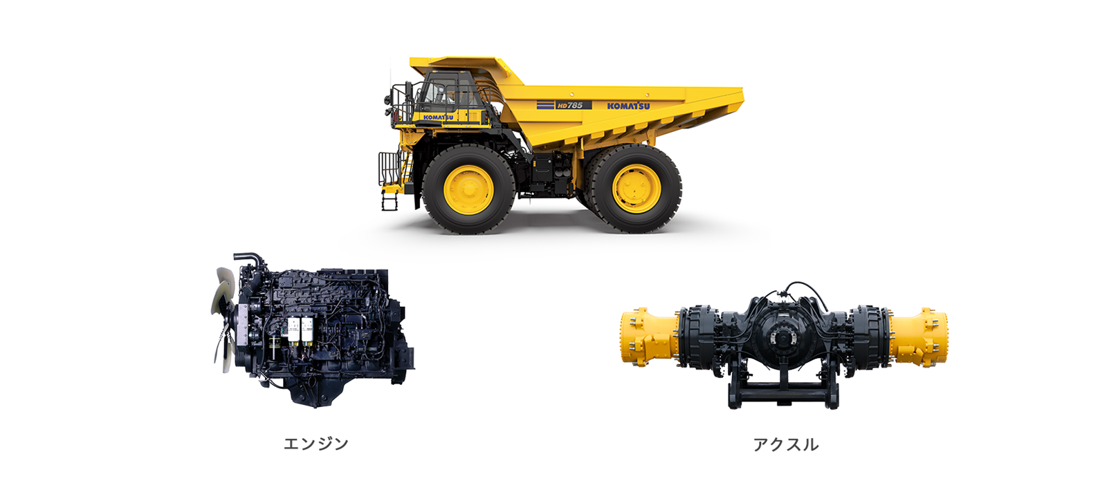 下図:ダンプトラックからみる、小山工場でのコマツリマン再生コンポーネント(例)