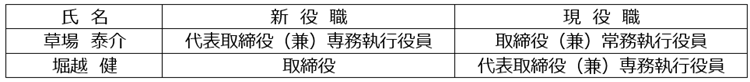 その結果、当社代表取締役は今吉琢也および草場泰介の2名となります。