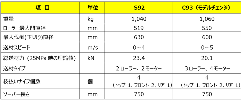当社は2011年より、高いグリップ力による確実な送材性能に優れるローラーキャリータイプ(※2)のC93を装着したハーベスター仕様車(※3)を日本で販売しており、その生産性に高い評価をいただいています。モデルチェンジによりその性能を一段と高めたC93を、このたびハーベスター仕様車として販売開始しました。