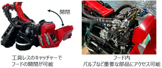 ・ヘッドカバーが工具レスで開閉可能で、バルブ等、メンテナンス面で重要な部分へのアクセスが容易です。
