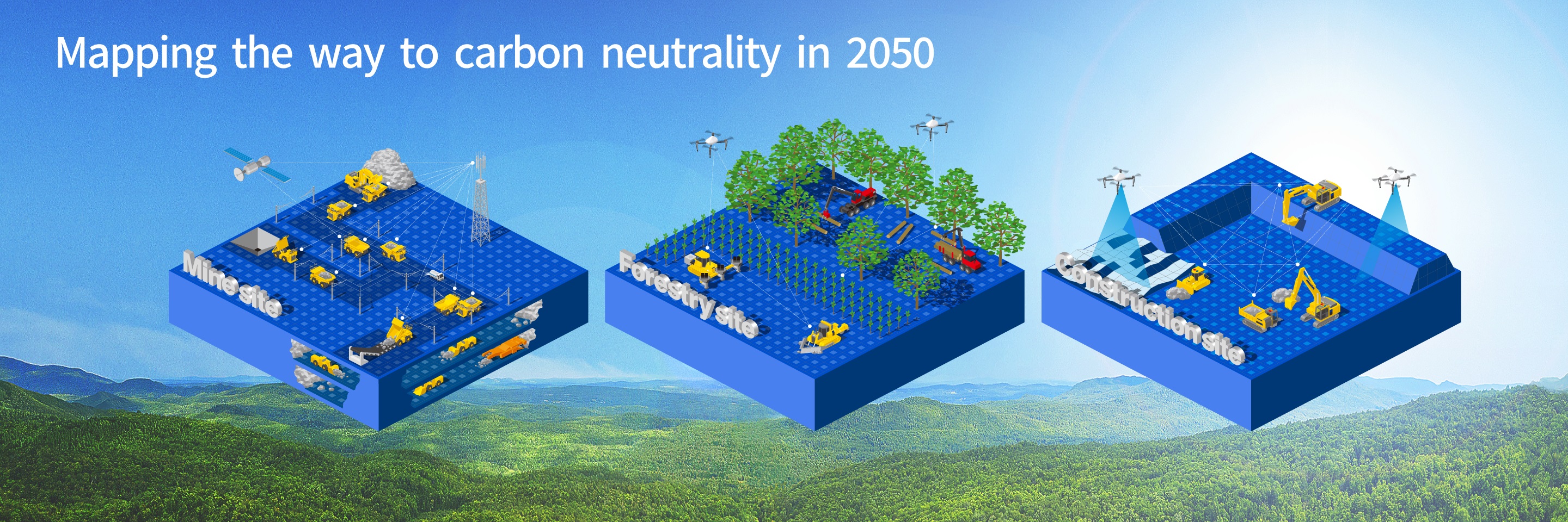 The realization of a decarbonized society demands consideration of not only advancing construction machinery but also improving the operation of the entire construction site. Komatsu believes that solutions that optimize the quantity and placement of human resources and machines to improve worksite efficiency will also effectively contribute to the reduction of CO2 emissions.
