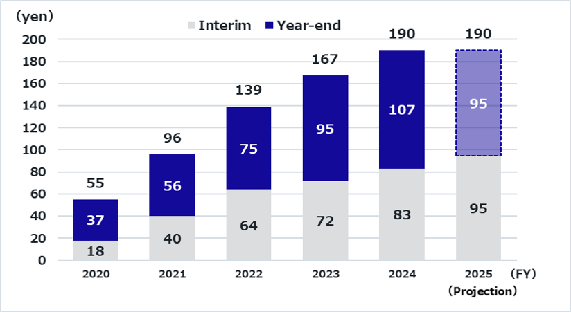 Note: Breakdown of the year-end cash dividend per share for the fiscal year ended March 31, 2021: Common stock dividend per share of JPY 27 and the 100th anniversary commemorative dividend per share of JPY 10