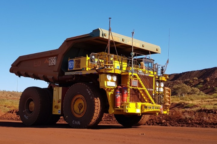 A standard truck 830E with the AHS retrofit kit running in autonomous mode at Rio Tinto’s mine in Australia