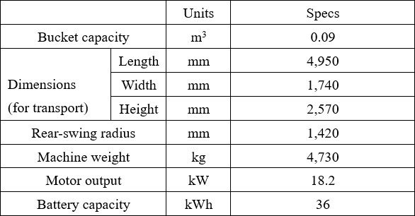 This industry-pacesetting model is based on Komatsu’s accumulated technological expertise of hybrid construction equipment and electric forklift trucks. Equipped with an in-house developed new charger, high-voltage converter and other devices, it offers excavation performance on par with the internal combustion model of the same power output, while achieving zero exhaust gas emissions and a dynamic reduction in noise levels. It is an environment and people-friendly machine. Komatsu expects a wider range of applications for this machine, including construction work near hospitals or schools or in residential areas, where contractors have conventionally paid special attention to exhaust gas and noise during work, as well as inside tunnels or buildings.