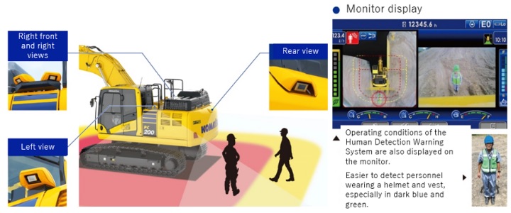[The PC200-11 equipped with KomVision Human Detection & Collision Mitigation System]