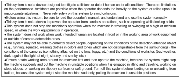 *2: Limited to the models equipped with KomVision for hydraulic excavators. Changing both cameras and software may be needed in some cases.