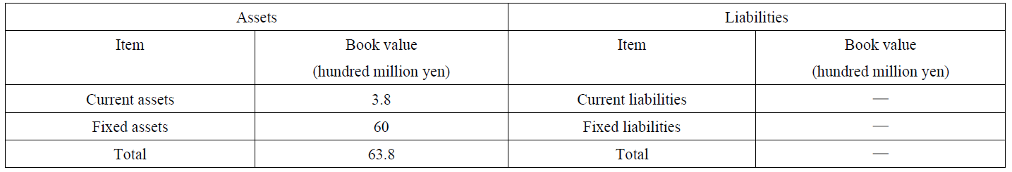 The above items and book values have been estimated based on the amounts as of March 31, 2021, and the actual amounts to be split off are different from the above.