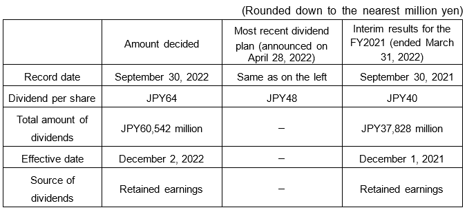 Komatsu Ltd. (President and CEO: Hiroyuki Ogawa) (hereafter “the Company”) announces today that, at a meeting of its Board of Directors held on October 31, 2022, the Company decided to pay a dividend of retained earning with the record date of September 30, 2022. Details are as follows.