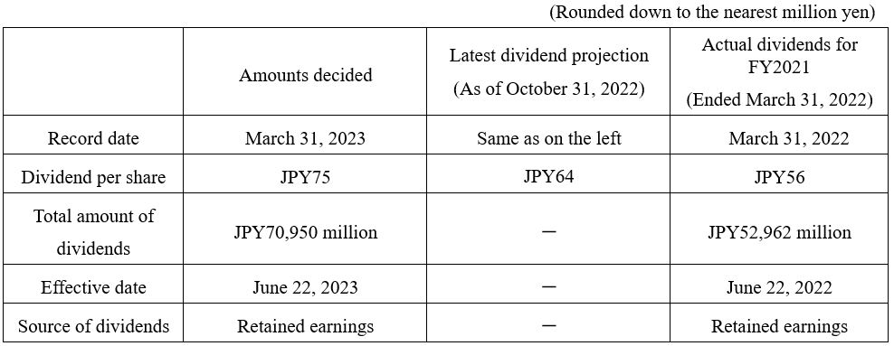 Please be also informed that the Board of Directors, in its meeting on April 28, 2023, resolved to propose at the 154th ordinary general shareholders’ meeting that the Company will change the latest projection of retained earnings with the record date of March 31, 2023 and pay dividends.