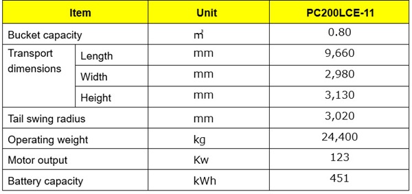 [New 20-ton class electric excavator "PC200LCE-11" equipped with lithium-ion battery]