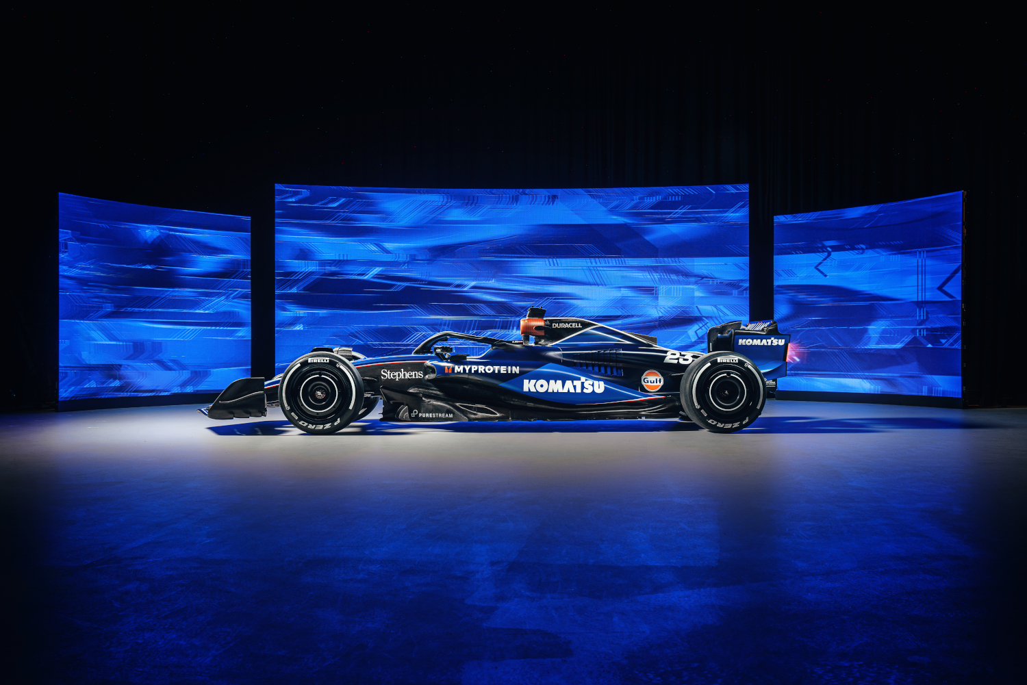 Komatsu’s logo and branding feature prominently on the 2024 Williams Racing livery,