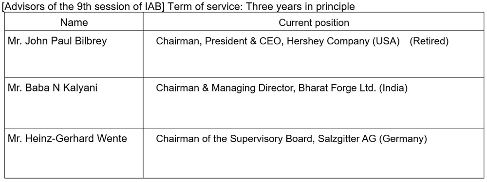 Komatsu Ltd. (President and CEO: Hiroyuki Ogawa) (hereinafter “Komatsu”) established the International Advisory Board (hereafter “IAB”) back in 1995 as an advisory body to the Board of Directors. The IAB advisors consist of external experts with extensive knowledge in global business, who provide objective advice and suggestions concerning management and operations as a global company.