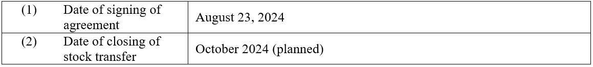Note: The date of closing of the stock transfer may vary depending on the fulfillment of certain conditions and the acquisition of necessary permits and approvals.