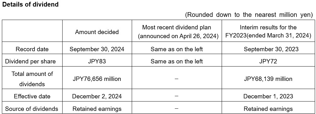 Komatsu Ltd. (President and CEO: Hiroyuki Ogawa) announces today that, at a meeting of its Board of Directors held on October 29, 2024, Komatsu decided to pay a dividend of retained earning with the record date of September 30, 2024. Details are as follows.