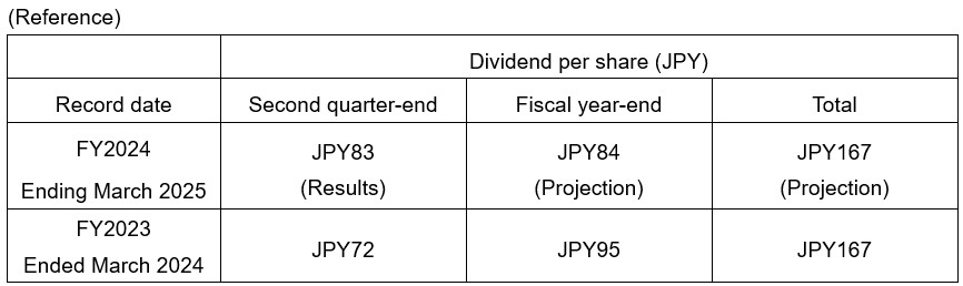 Concerning the interim cash dividend under this basic policy, Komatsu plans to pay JPY 83 per share according to the projection of April 26 this year. Similarly, with respect to the year-end cash dividend and annual cash dividends, there will be no change to the projection of the same date. The consolidated payout ratio will become 41.2%.