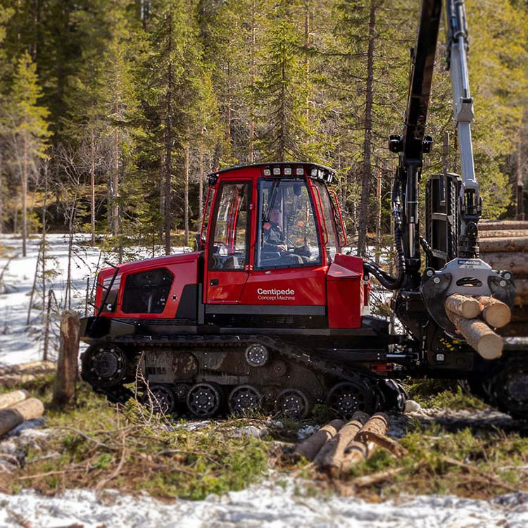 Exhibited at the "SWEDISH FORESTRY EXPO 2023" in Sweden, "Centipede" is a forwarder concept machine developed in a large-scale joint project by Komatsu Forest AB and eight Swedish forestry companies.