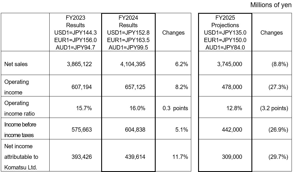 Komatsu Ltd. today announced its consolidated business results for the fiscal year ended March 31, 2025 (U.S. GAAP). The highlights are described below.