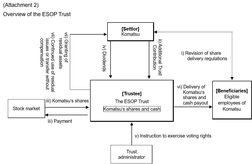 The ESOP Trust is a trust-type employee incentive plan modeled on the U.S.’s Employee Stock Ownership Plan (“ESOP”) system and is intended to expand the incentive plan for persons eligible for the ESOP Trust using Komatsu’s shares.