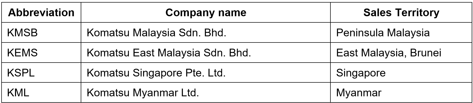 *2: KHMS is the parent company of KMSB, KEMS, KSPL, and KML. The company name of UMW Komatsu Heavy Equipment Sdn. Bhd. had been changed to Komatsu Holdings Malaysia Sdn. Bhd.