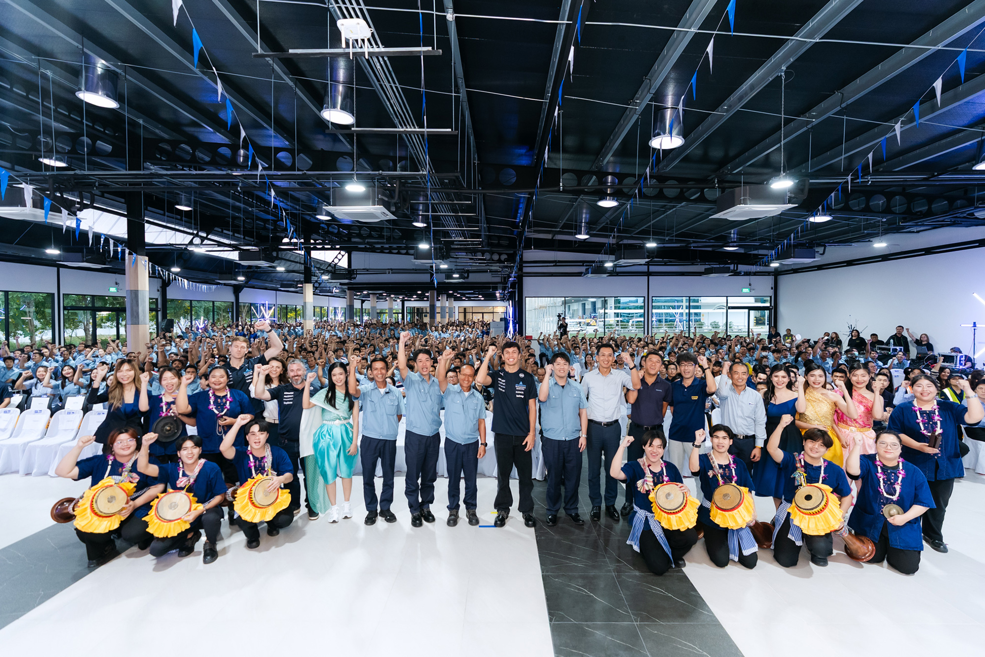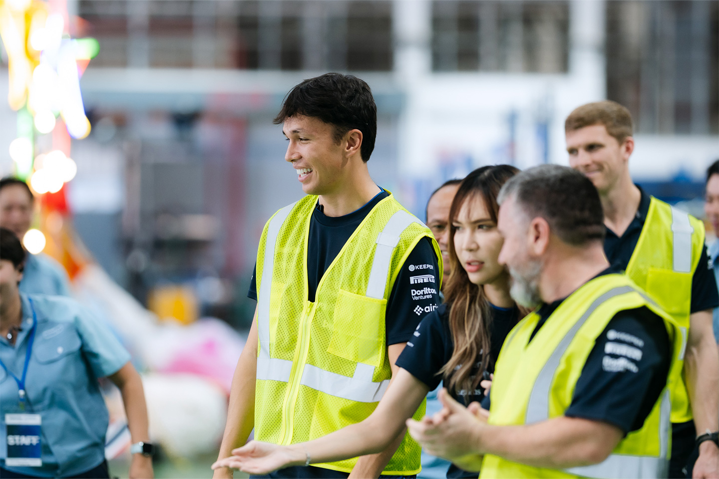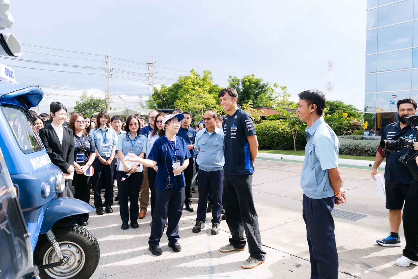 Alex Albon with Komatsu employees in Thailand during a recent tour of the facility. The visit was meant to show Komatsu’s values to Albon, who is of Thai descent.