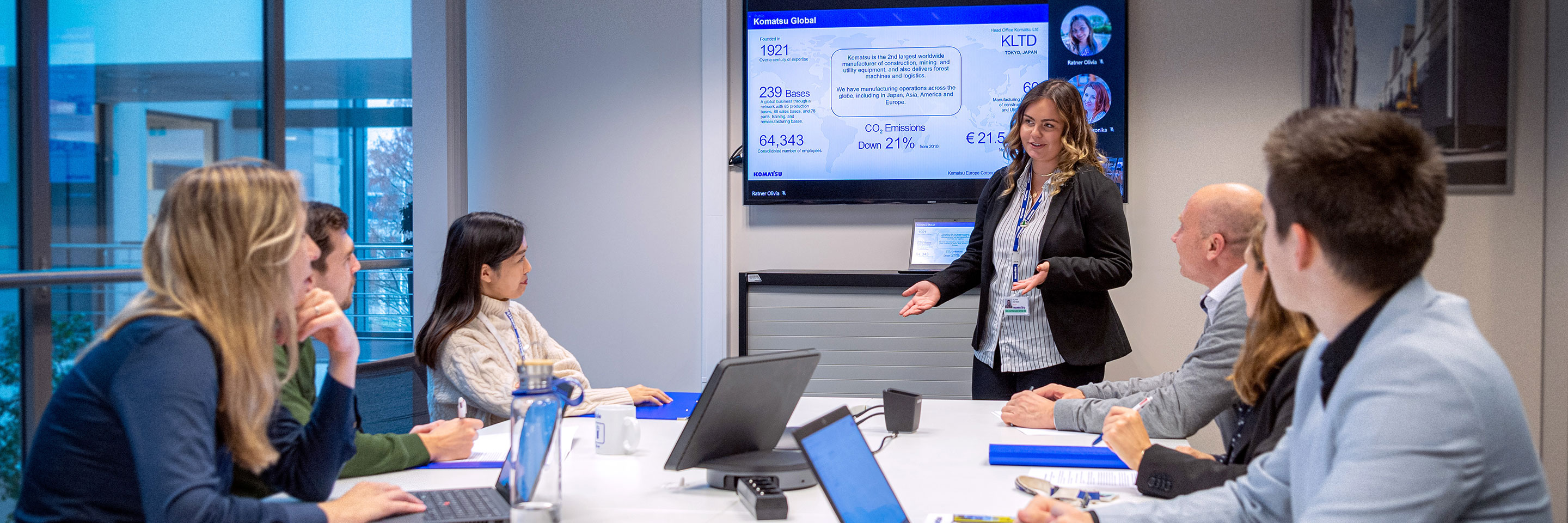 本社は多様で国際的な雰囲気に包まれています。社員の国籍はおよそ35か国にわたり、日常的に国境を越えたチームワークで業務を行っています。たとえば、ドイツ人エンジニアがイタリア人技術者と協働したり、ベルギー人の管理者がフランス人物流担当者と連携したりするのは珍しくありません。