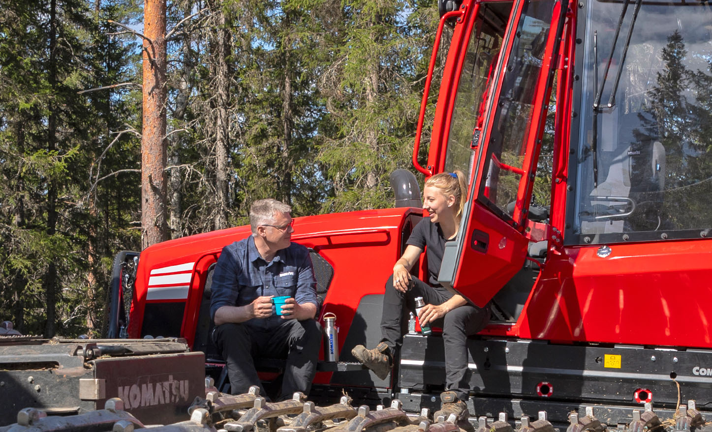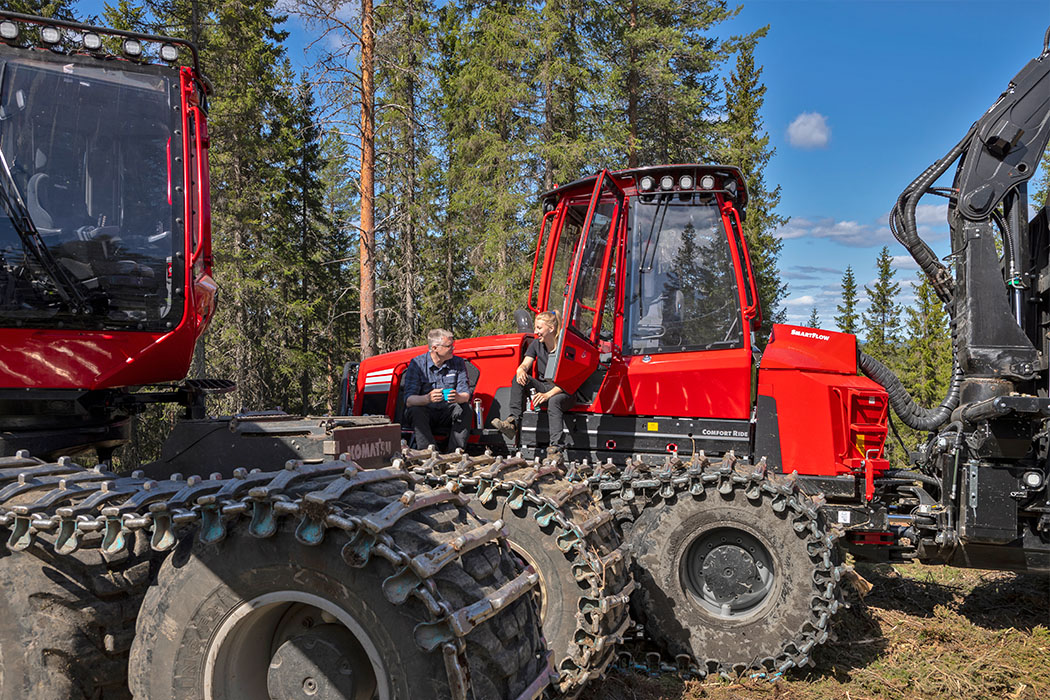 895フォワーダーでの作業休憩中のヘニングソンと同僚