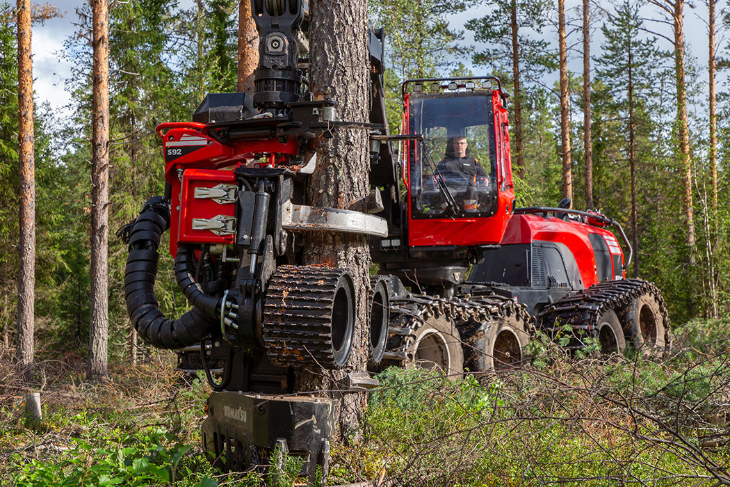 ここでは、S92 ハーベスターヘッドのテスト運転を行っています。