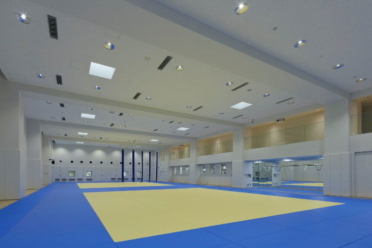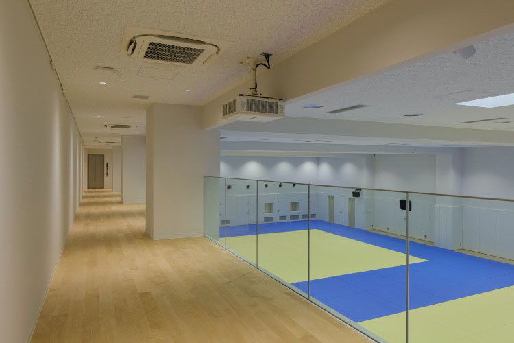 柔道場は256畳あり天井高6m、上階には柔道場が見渡せるよう見学用ギャラリーを設置しています。また、最新鋭のトレーニング機器やICTツールを備え、練習に最適な環境となっています。