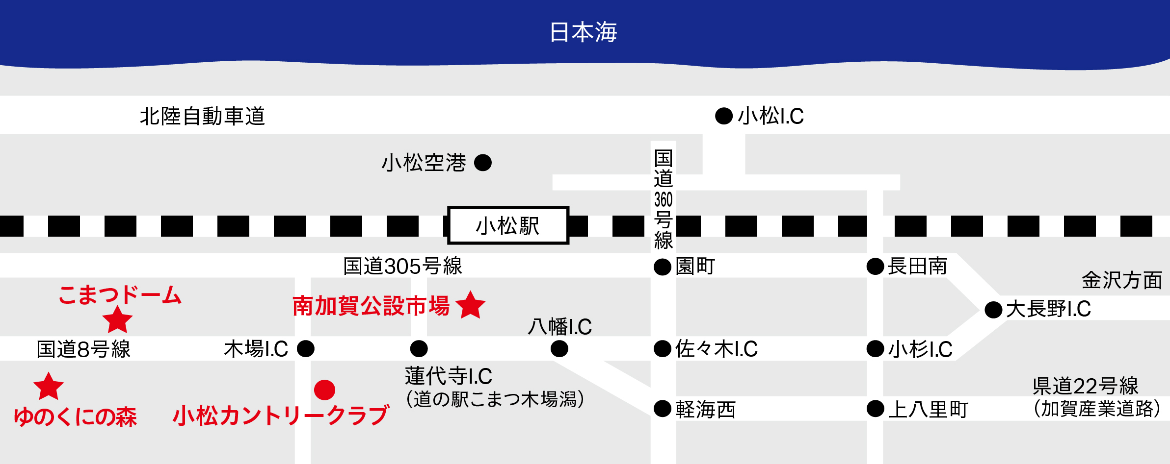 JR小松駅より、無料ギャラリーバスを随時運行(会場まで約20分)