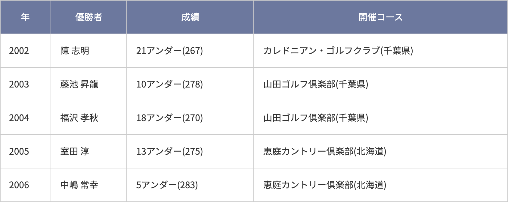 翌年の1991年から94年はPGAシニアツアー「コマツオープン」として、千葉県佐原スプリングカントリー倶楽部で開催。95年から98年は、PGAシニアツアー「コマツ名古屋テレビオープン」として開催しました。2000年より、再びPGAシニアツアー「コマツオープン」として開催しました。
