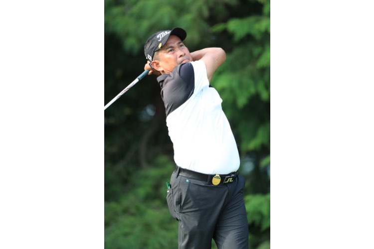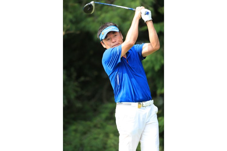 最終日。首位のパク ブーウォンに1打差でスタートした川岸良兼(51)は連続バーディーで好発進。その後2ボギーで後退したが、そこから粘りの4バーディーで首位のパクに1打差まで戻した17番でまさかの2度打ちのハプニング。