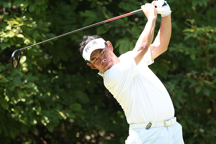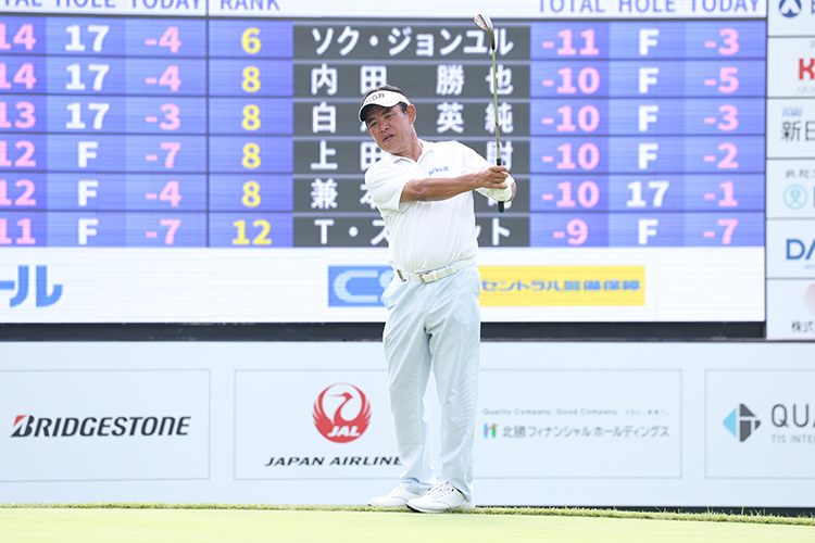 1打差の5アンダー単独2位にはソク・ジョンユル、さらに1打差4アンダー3位タイグループには、歴代覇者のP・マークセン、寺西明、横田真一、兼本貴司、塚田好宣、内田勝也、渡部光洋の7人が追う。
