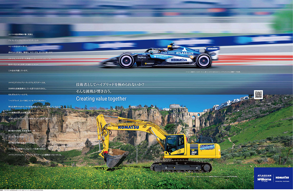 結果は、写真でご覧の通りである。2日間の総作業時間、約22時間。二台の建設機械は、求められる精度で、最後の仕上げを終えた。オペレータの顔に、安堵の笑顔が広がる。この規模の作業としては通常より二回りほど小さいPC128USiとD37PXiも、どこか誇らしげに見える。建設現場の常識をいくつも変えてしまう「スマートコンストラクション」。だからこそ、この広告では、実際の仕事ぶりを検証し、多くの人に目撃していただこうと試みた。実際、すでに多くの現場で、この新しい建設のカタチがはじまっている。そして、多くの驚きの声が上がっている。