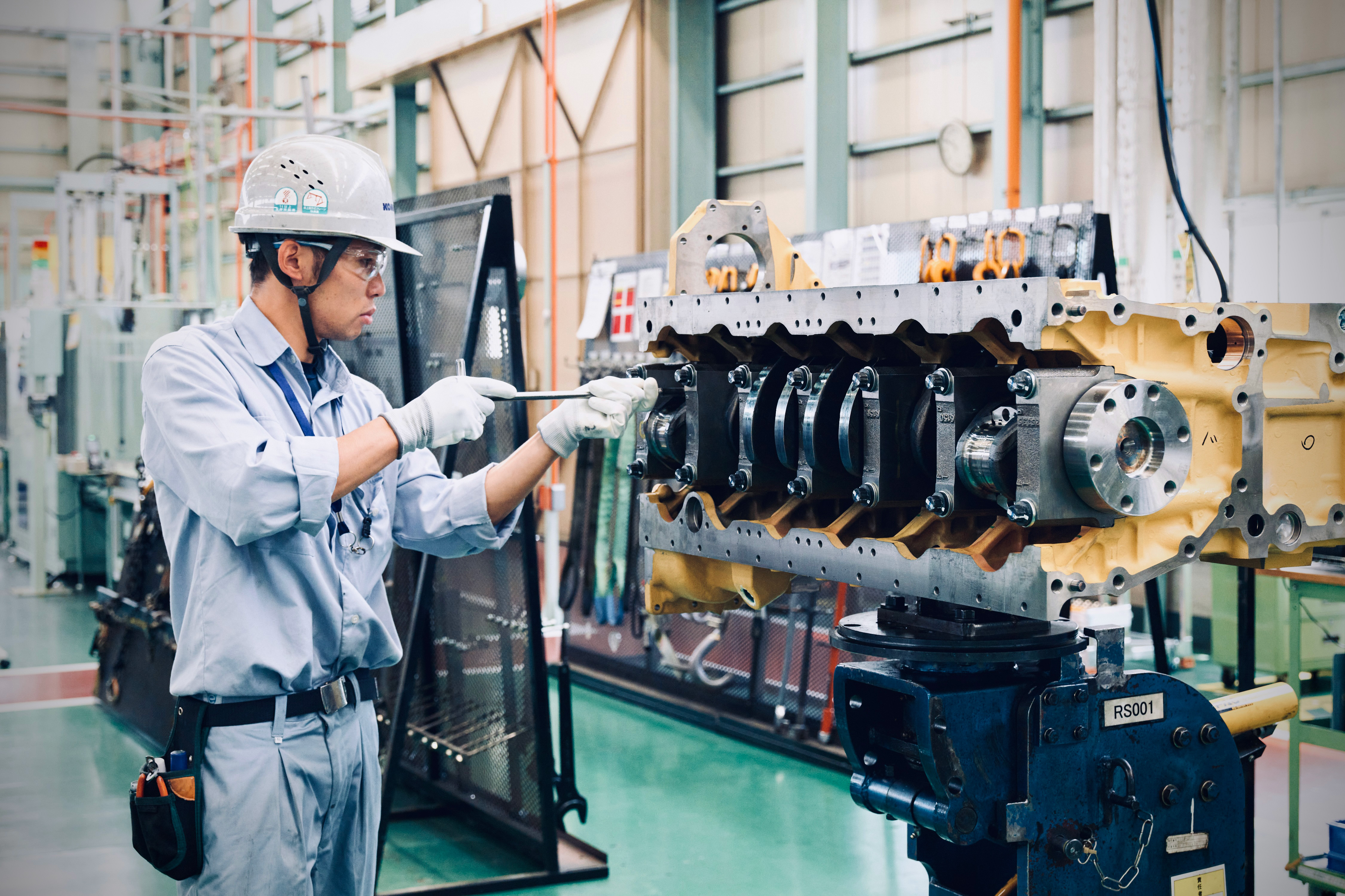 小山工場は、エンジンや油圧機器、アクスルなど建機の主要なコンポーネントを開発・生産し、世界へ供給しています。