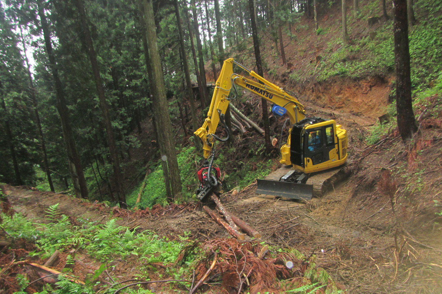 循環型サイクルを維持しつづけるために働く人の快適さ・扱いやすさを追求。作業効率・耐久性の高い林業機械や油圧ショベルベースの林業仕様車などを開発しています。林業機械化、省力化を目指して多彩な専用車やアタッチメントを揃え、稼働のサポートも行っています。