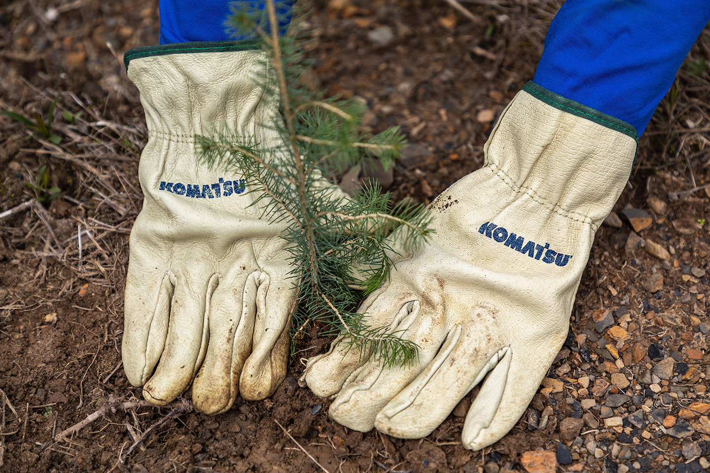 開発が終了した採石山は、将来の環境への配慮や景観保全の観点から緑化などを行います。その緑化もコマツの建設機械がサポート。採石山の二次利用を促進することで地域社会へ貢献しています。