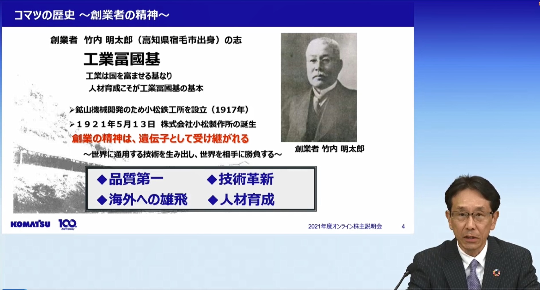 今回のインタビューでは、「コマツ創立100周年記念活動」につきましてお伝えいたします。