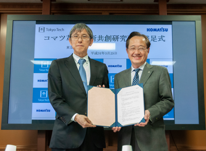 東京工業大学(学長:益一哉、以下「東工大」)とコマツ(社長:大橋徹二)は、東工大における新しい産学連携プログラム「協働研究拠点」の第1号として「コマツ革新技術共創研究所」(以下、「共創研究所」)を本年4月1日に設置します。東工大すずかけ台キャンパスに325㎡の専用スペースを確保して、組織対組織の幅広い分野での連携を進めていきます。