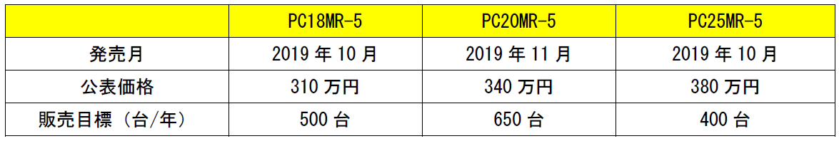 【写真(左から):新発売の「P18MR-5」、「PC20MR-5」、「PC25MR-5】*一部オプションが含まれています。