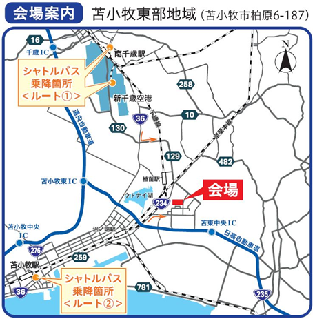 ルート① JR南千歳駅前~新千歳空港~会場 所用時間:約35分