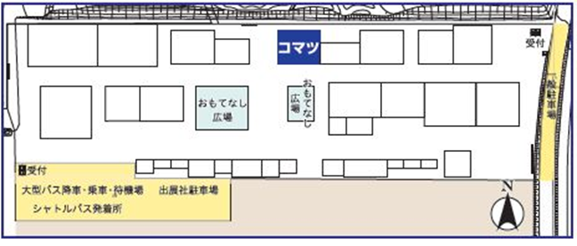 コマツブースは、会場中央の「おもてなし広場」付近のブースNo.7にございます。