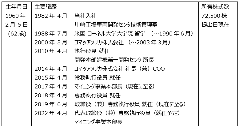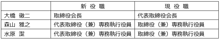 現代表取締役会長の大橋徹二につきましては、代表権のある会長に就任して3年が経過することを機に、代表権を返上することといたしました。会長は業務執行を監督するという立場を更に明確にすることで、当社のコーポレートガバナンスの一層の強化を図っていきます。これにあわせ、現取締役(兼)専務執行役員の森山雅之および水原潔に代表権を付与することといたしました。