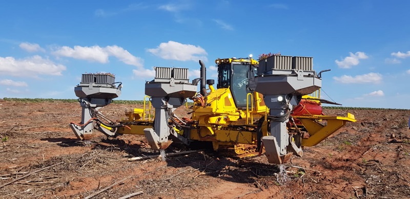 2014年より、同社とコマツは植林分野、建設機械分野でそれぞれが培った技術と経験を活かすことで共同開発を進め、2021年度にはブラジルにおいて、世界初のブルドーザーをベースに、植栽作業の自動化を実現した自動運転※の植林機「D61EM-23M0」を市場導入しました。