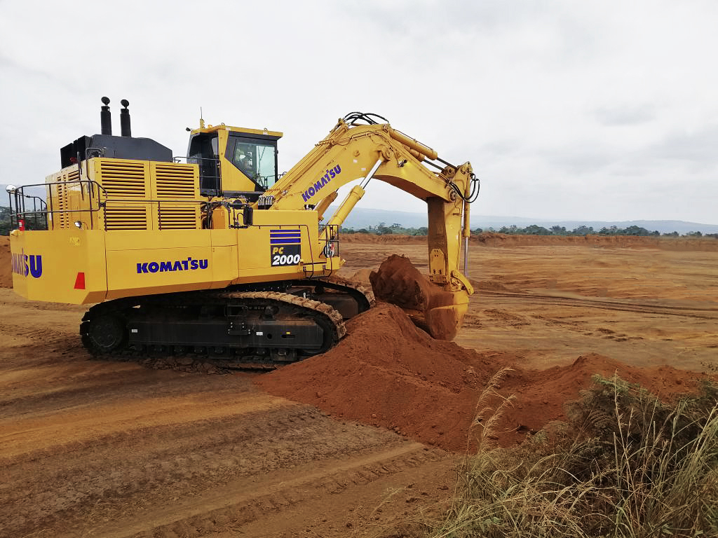 ガボンのマンガン鉱山で稼働する大型油圧ショベルPC2000