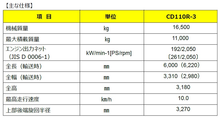 コマツ(社長:小川啓之)は、最新技術を随所に織り込み、「特定特殊自動車排出ガスの規制等に関する法律」(※1)2014年基準に適合した全旋回式クローラーキャリア「CD110R-3」を2023年2月より発売します。