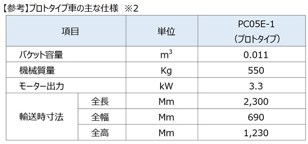 電動マイクロショベル「PC05E-1」プロトタイプ